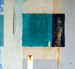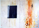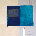 2006Blauwzwart gedacht als kleur van communicatie. Vlakken als ruimte in andere ruimtes. Materie, Nepal papier, kozo, jutte en moerbeiboom fiber op linnen