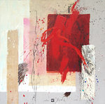 2008Rood karakter op rood veld. Acryl op Lokta papier op linnen.