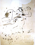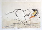 2003Getordeerd liggend naakt in inkt acryl en met Nepal papier op papier.