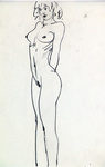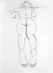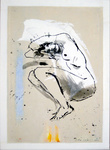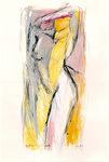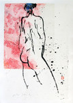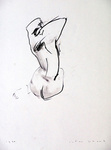 1986Naakt met arm achter de rug en een arm omhoog. Zeefdruk monoprint d.w.z. direkt op de zeef geschilderd en gedrukt op twee vellen arches papier