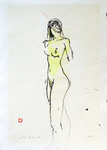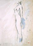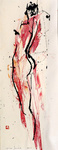 2005(Gewassen) Japanse inkt op Kozo (Japans rijstpapier ) op linnen. Het naakt uitgedrukt in een enkele lijn. De kwetsbare directheid van de penseel tekening en de zachte schoonheid van het rijstpapier smelten samen op doek.
