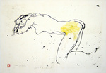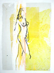 2008Geabstraheerd naakt-inkt en gele acrylop papier