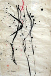 2002Nepal papier met gewassen inkt en acryl op Nepal papier.