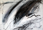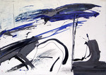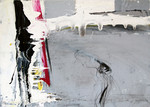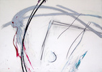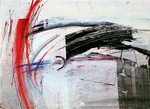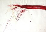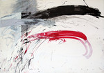 1990Rode beweging met lijnen en witte streep in zeefdrukint op papier