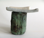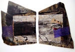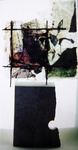 1992object van leisteen uit de Haute Savois. Beplakt met kozo en beschilderd.