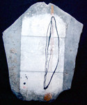 1993Leisteen uit Haute Savois beplakt met zelfgeschept kozo beschilderd met oester in gewassen inkt.
