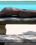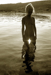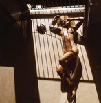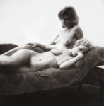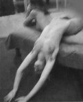 1980Model in spoelbak met bloemen Scan van pollaroid